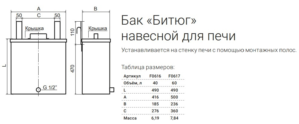 Бак навесной для печи предназначен для снабжения горячей водой душевых и банных помещений индивидуальных жилых домов. Нагрев в баке происходит за счет того, что бак закреплен на печи с помощью монтажных полос. Стенки бака и печи соприкасаются, и тепло от печи передается воде. Также бак может использоваться самостоятельно как емкость для воды.