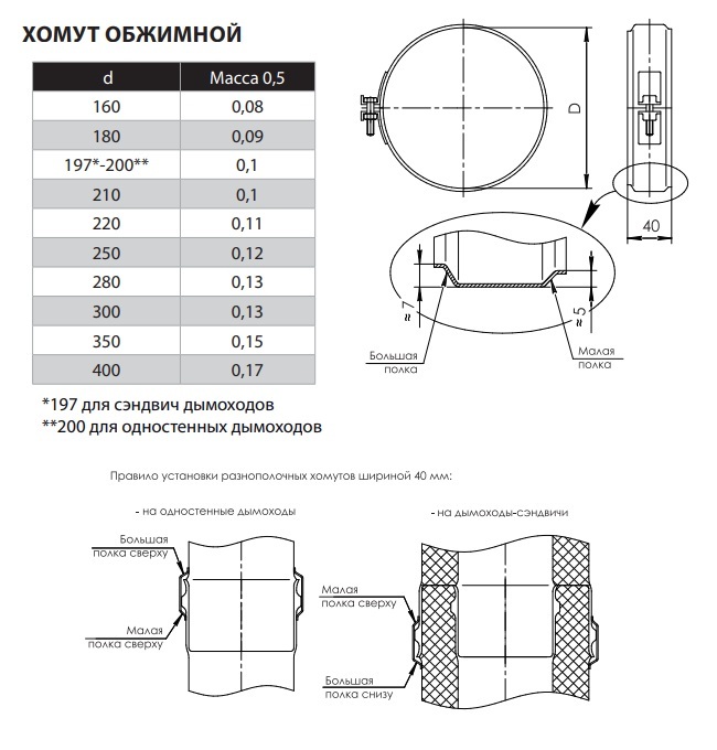Элемент предназначен для скрепления элементов дымохода между собой. Изготовлен из нержавеющей стали AISI 430, окрашен черной термостойкой эмалью. Улучшает герметизацию системы на стыках дымоходных элементов.