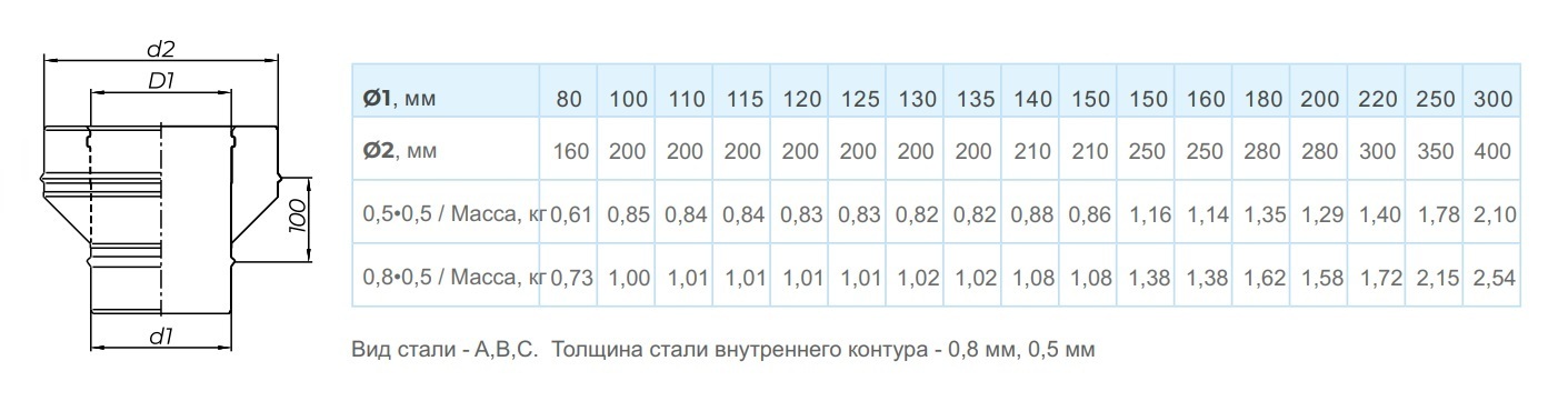 Используется в качестве перехода при сборке одностенного дымохода по конденсату на двустенную систему.
