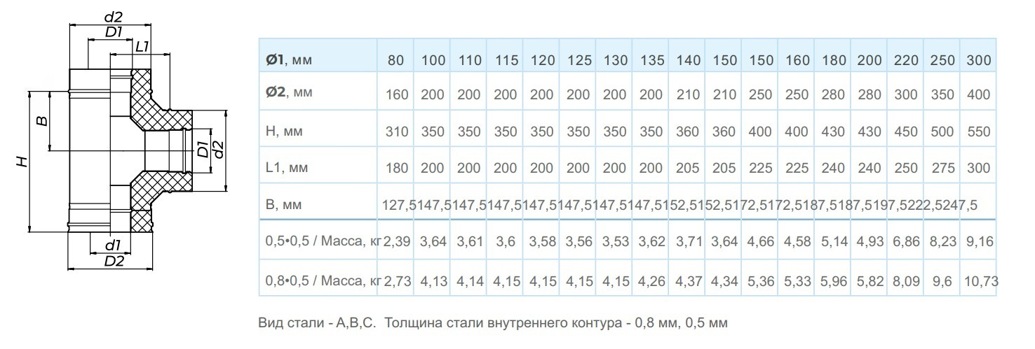 Толщина стали наружного диаметра.........0,5 мм