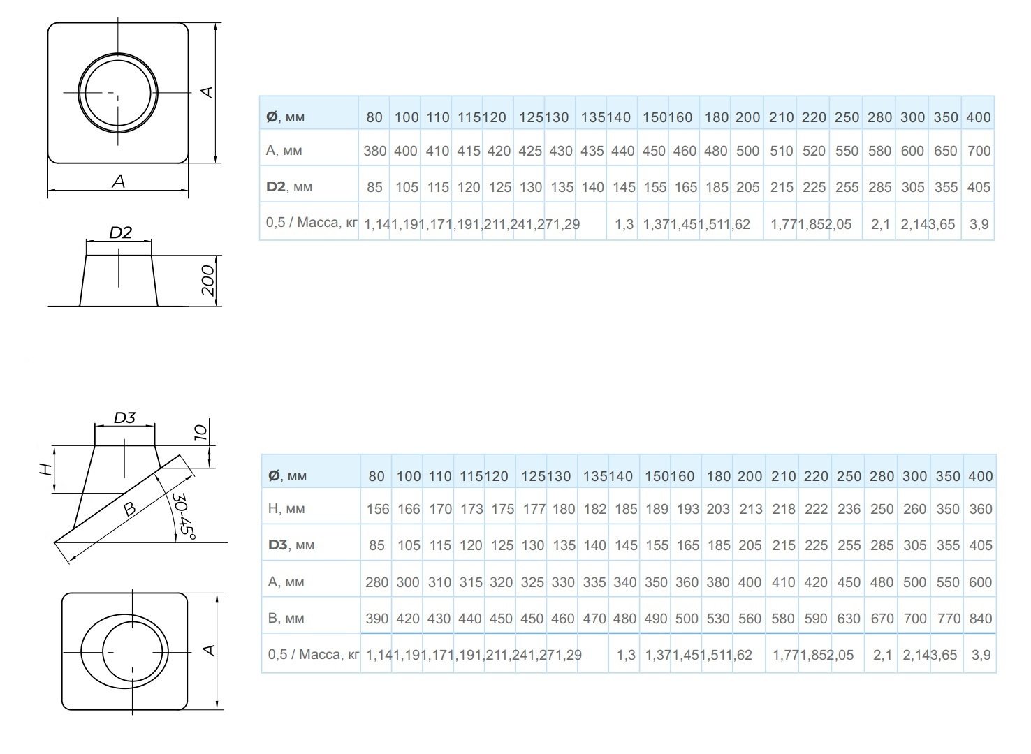 Крышная разделка укомплектована юбкой, применяется данный элемент в целях предотвращения попадания атмосферных осадков в проем кровли в котором расположен дымовой канал. В комплекте прилагается юбка.