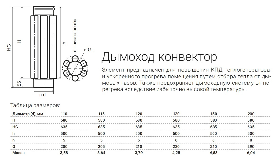Дымоход-конвектор является теплообменником, который располагается над отопительным котлом или банной печью, осуществляющий ускоренный нагрев одного помещения и подачу нагретого от дымохода воздуха в соседние помещение.